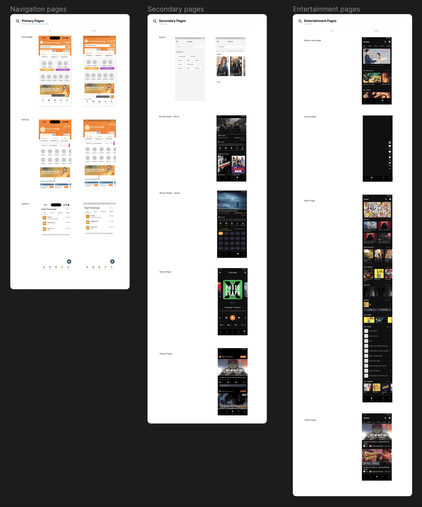 After employing the reverse engineering process for all pages of both iOS and Android versions the app, I organized the components in separate pages and reusable libraries in Figma.