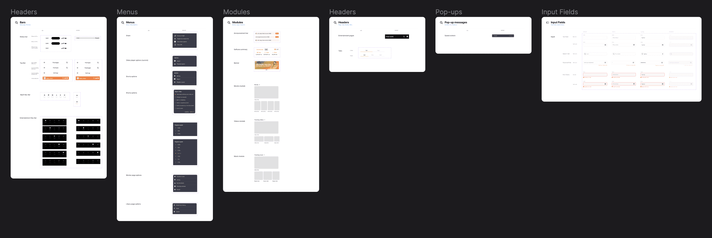 Then, I created components for all the sections, modules, modals, menus, pop ups, etc.