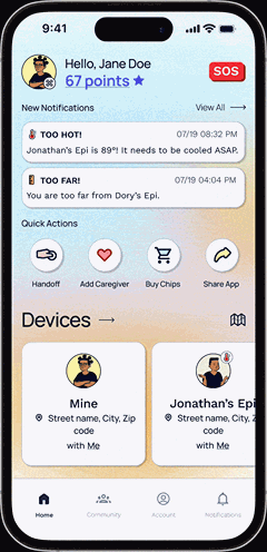 The app supports seamless EpiPen handoffs, establishes secure medication zones, and allows users to send SOS alerts to nearby EpiReminder app users during emergencies.