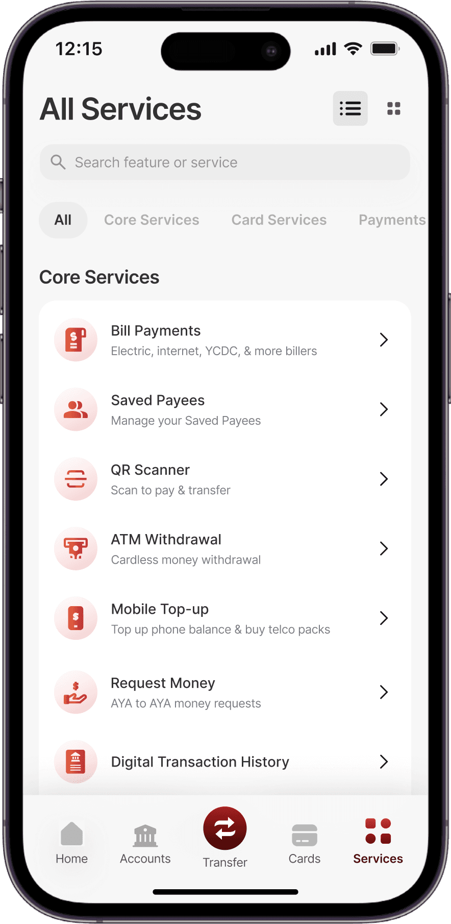 Redesigning everyday essential tasks that form the core of the AYA Mobile Banking app not only improved usability and accessibility, but also strengthened AYA’s brand perception as a trusted, user-first bank. This redesign shows how thoughtful UX can drive adoption and satisfaction of digital banking. This project deepened my understanding of designing for diverse digital literacy levels and the importance of aligning UX with cultural context.