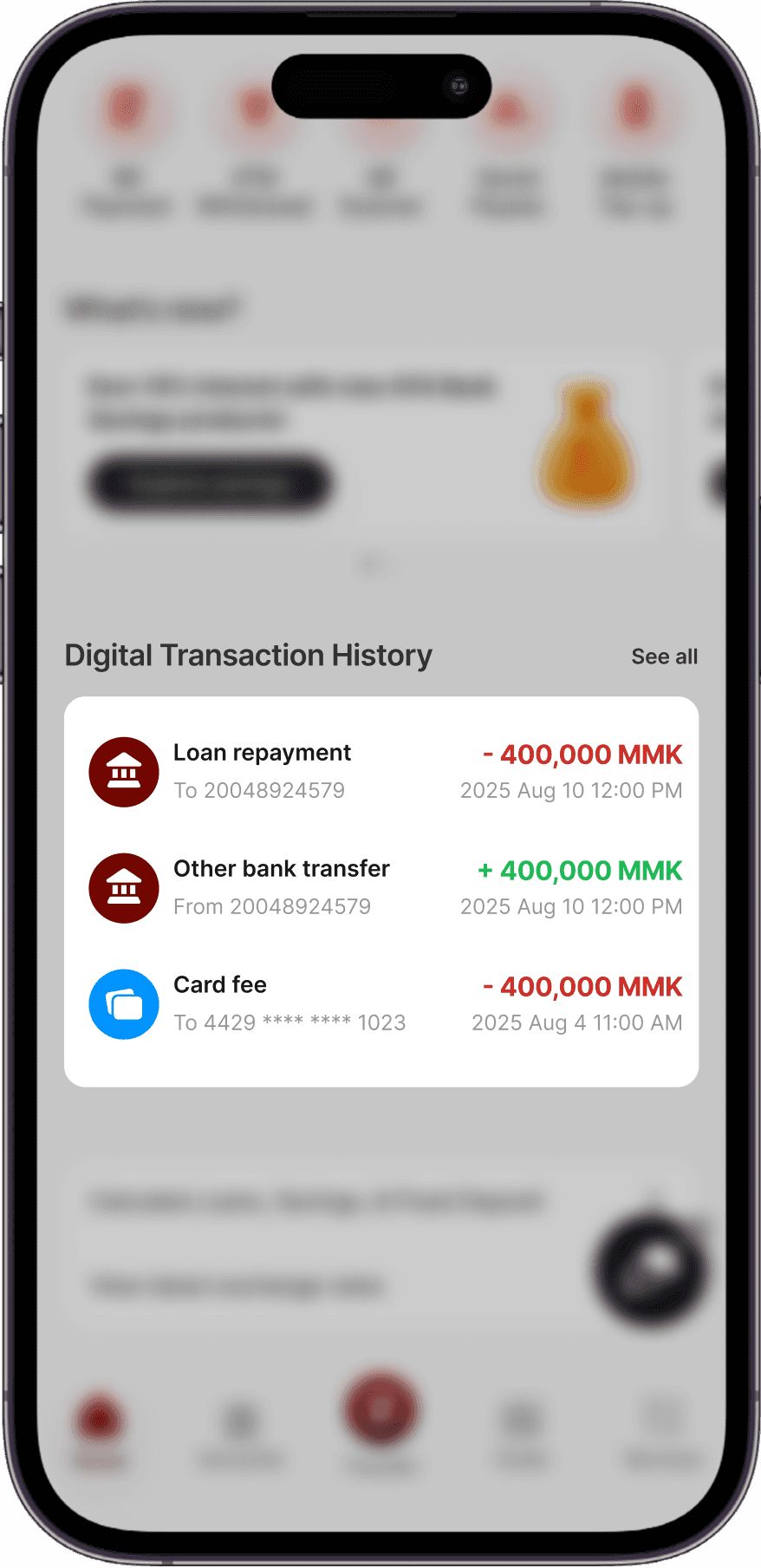 After conducting user interviews with 6 mobile banking users in Myanmar between the ages of 25 and 45, a competitor analysis with 6 banking apps, and a usability audit, we uncovered frustrations and recurring pain points, which provided valuable insights that guided design decisions.